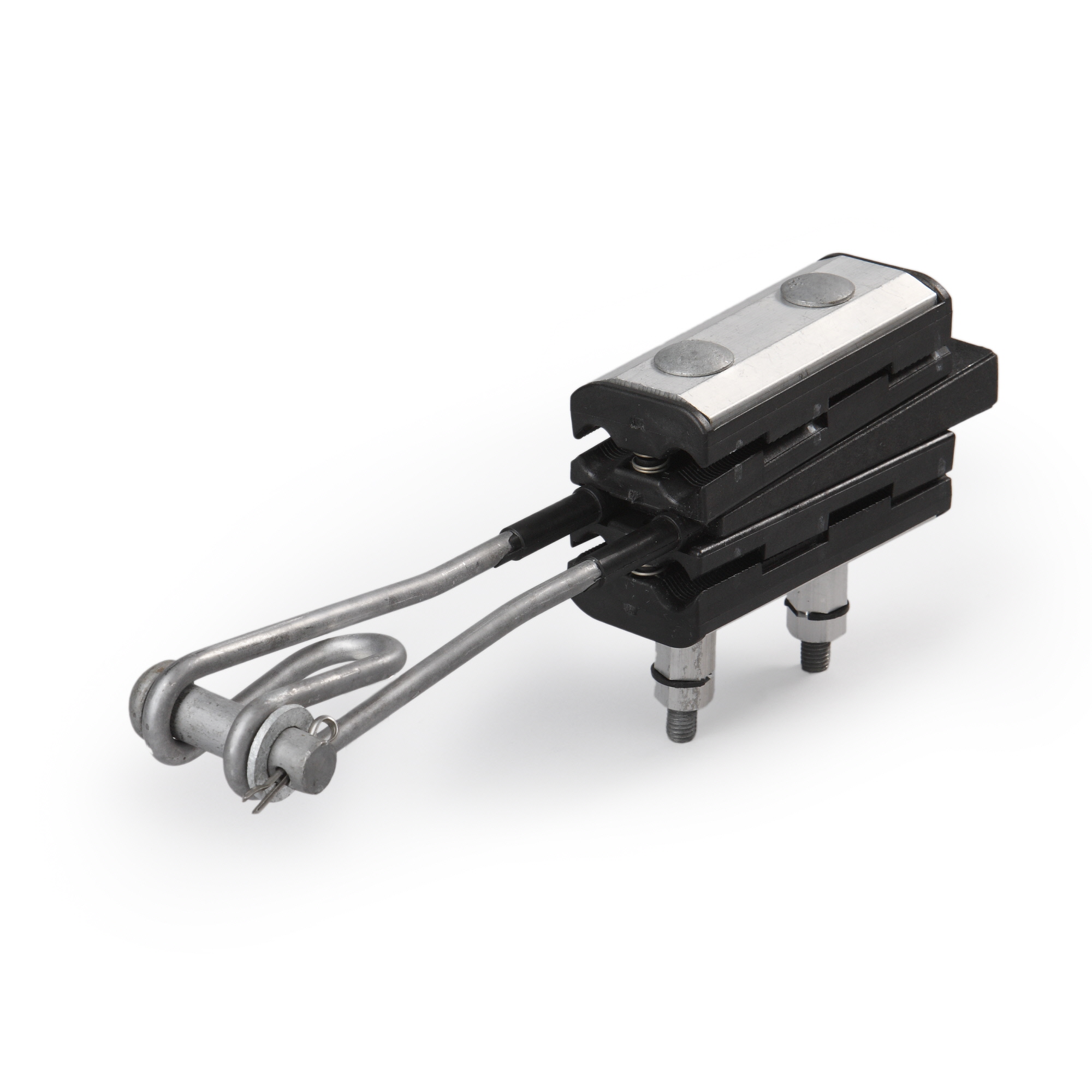 Для оконцювання 4-жильного кабелю низької напруги за допомогою гачкового або універсального кріплення. Затискачі мають міцні пружини, які утримують затискач у відкритому положенні під час монтажу провідників. Затиск здійснюється за допомогою клинів. Корпус виготовлений з атмосферостійкого алюмінієвого сплаву, а пластикові частини – зі спеціального пластику, армованого скловолокном.