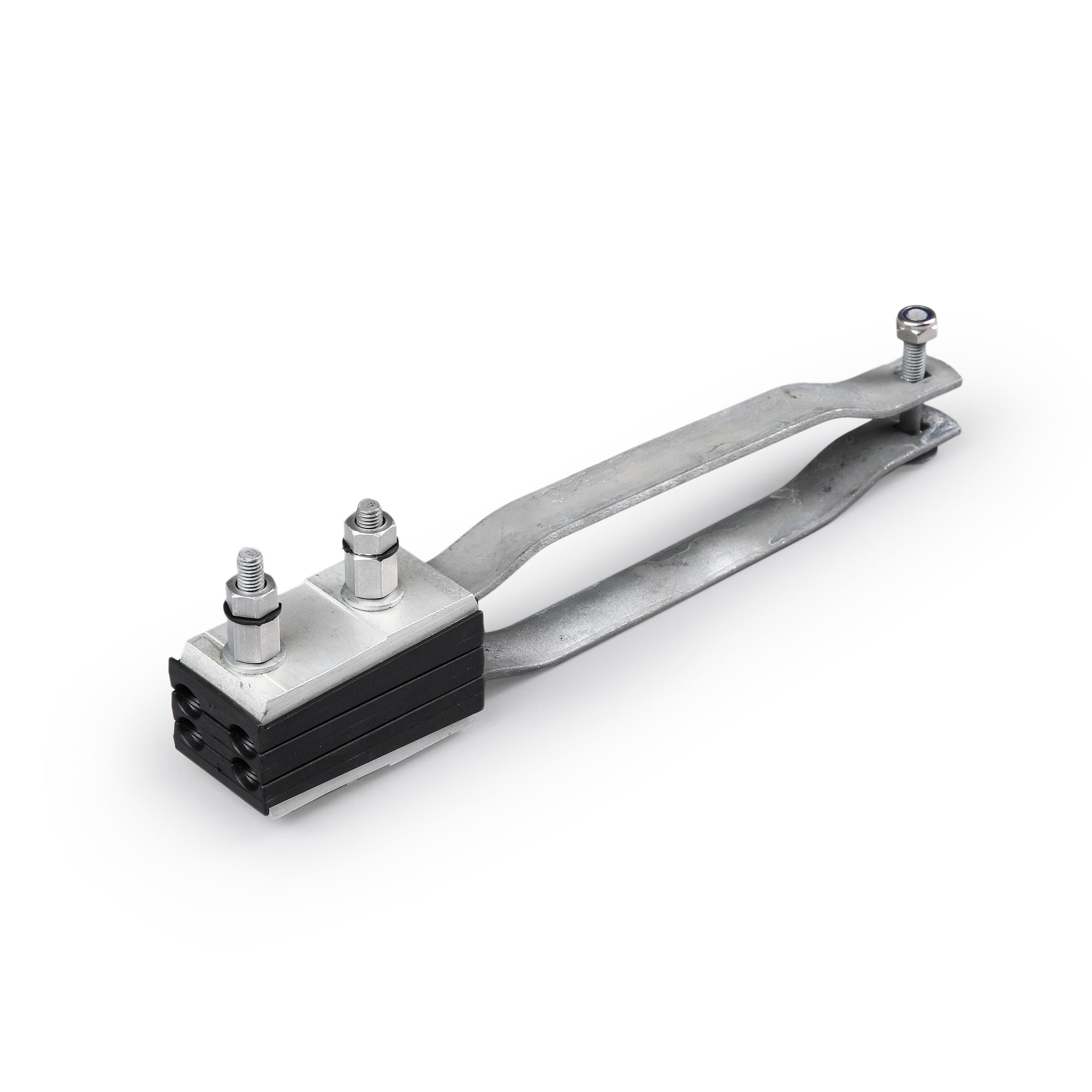 Для окантовки 4-жильних повітряних кабелів. Натяжний затискач оснащений гайками з різьбовою головкою.
