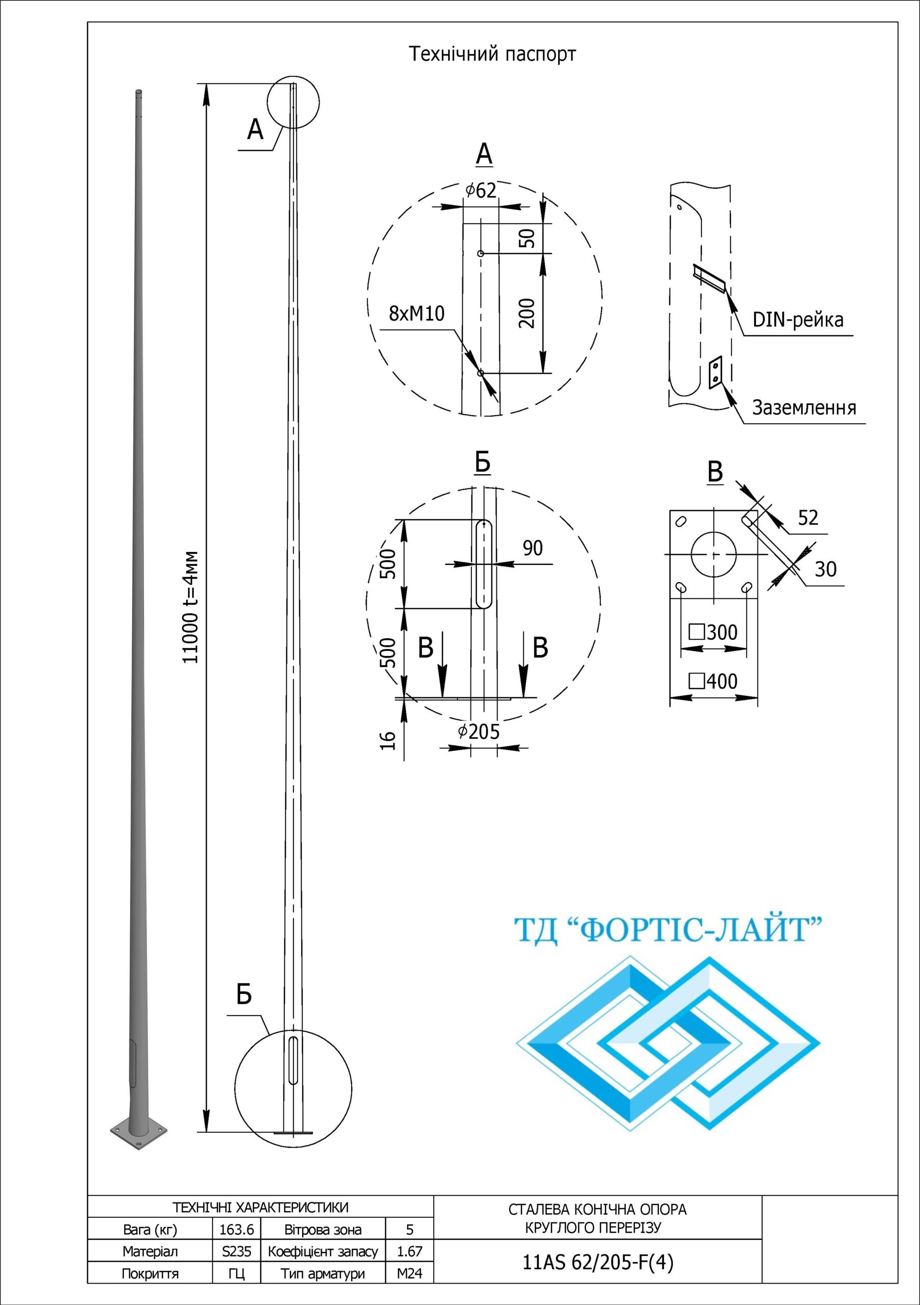 Опора оцинкована кругла 11AS 62/205-F(4)