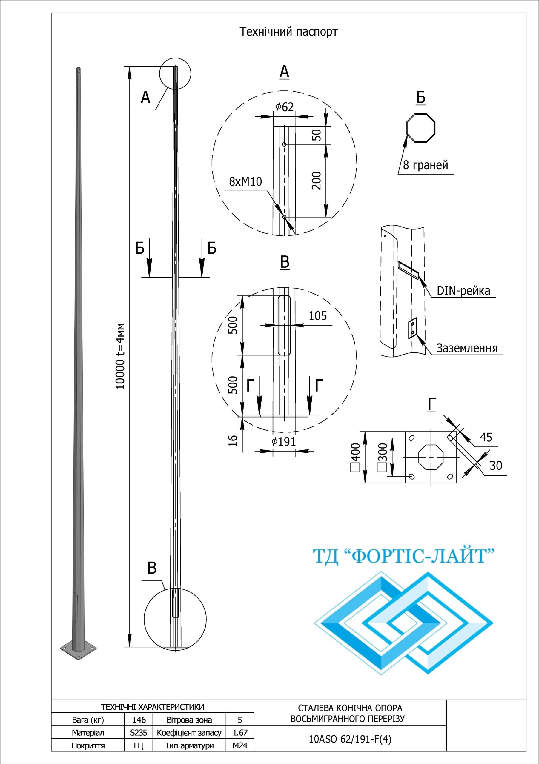 Опора оцинкована восьмигранна 11ASO 62/191-F(4)