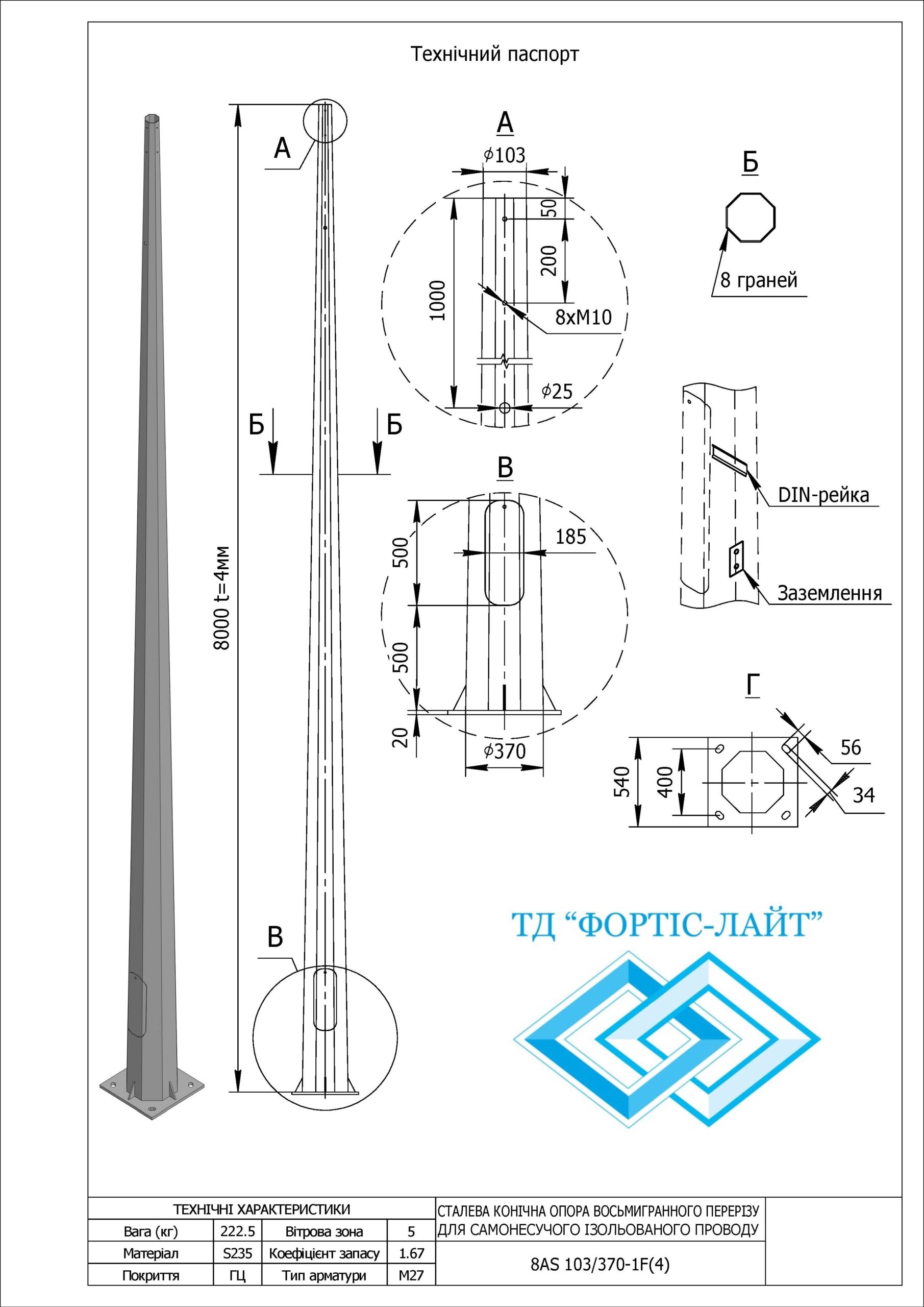 Опора восьмигранна під СІП 8AS 103-370-1F(4)