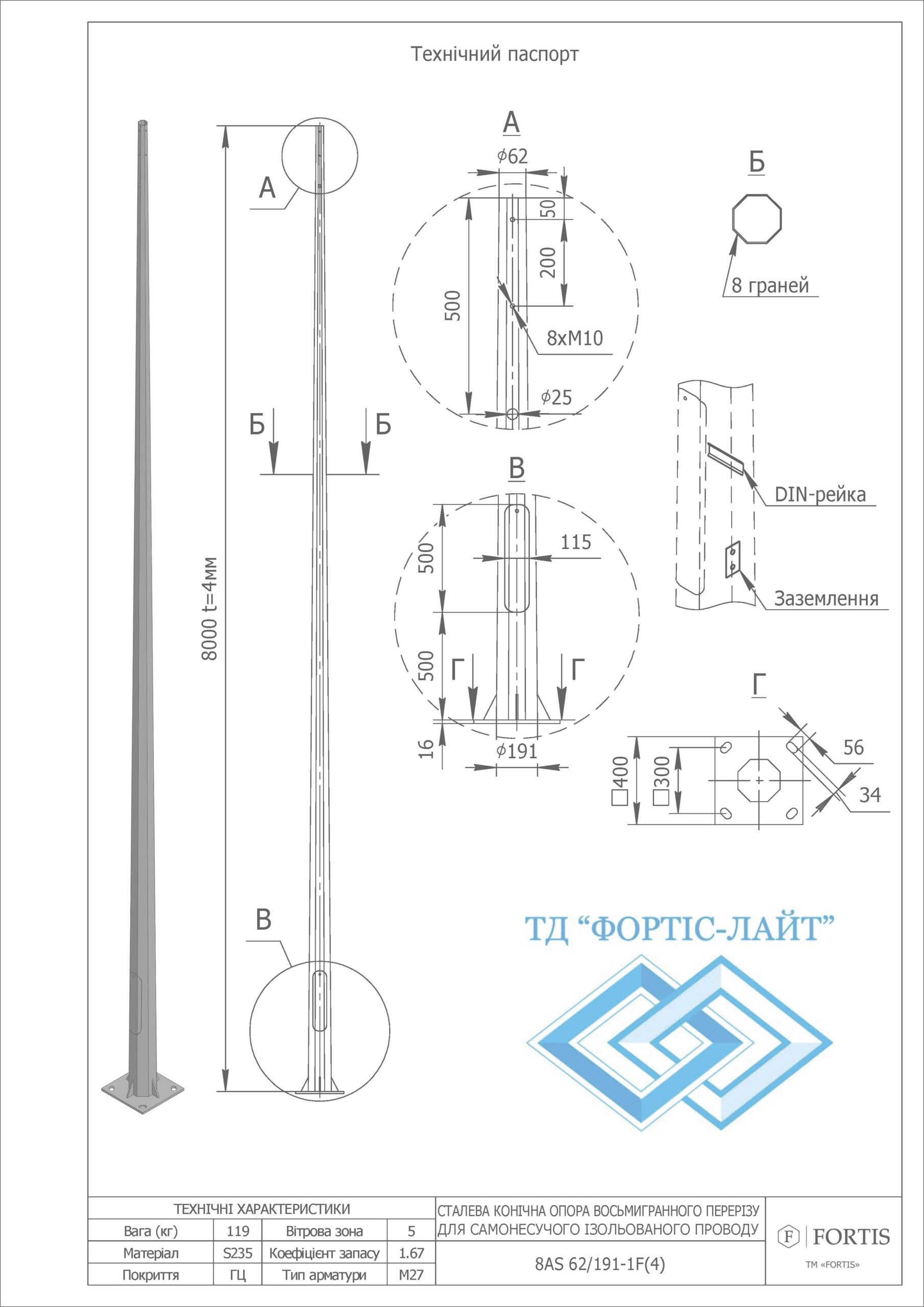 Опора восьмигранна під СІП 8AS 92-191-1F(4)